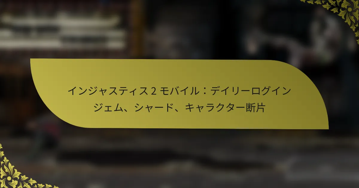 Injustice 2 Mobileでキャラクターフラグメントを収集するための効果的な方法はいくつかあります。プレイヤーは、デイリーログイン報酬、ミッションの完了、特別イベントへの参加を通じてフラグメントを獲得できます。