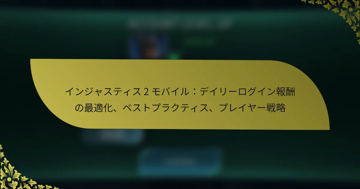 Injustice 2 Mobileで毎日のログイン報酬を最大化するために、プレイヤーは戦略的なリソース配分、キャラクターの育成、コミュニティへの参加、一般的な落とし穴を避けることに焦点を当てるべきです。これらの実践により、プレイヤーは報酬を効率的に獲得するだけでなく、全体的なゲームプレイ体験を向上させることができます。
